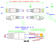120 Ohm 10 Pair Cable terminated to 15 way D Type Socket to ITT Canon Plug And Ring Terminals (Series 4 1/4 (4+4) DC Power Cable
